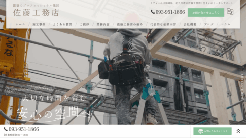 基本的に自社施工体制で工事に当たり、外注に頼らない施工が品質の安定につながっている。新築工事では土地探しから設計・施工まで一貫してサポートし、自然素材の活用や省エネ性能にも配慮している。「共に築く一生の家」というコンセプトのもと、完成後も長く安心して暮らせるよう末永くサポートするという姿勢を明示しており、完工して終わりではない長期的な関係性を前提にした事業スタイルをとっている。北九州市での施工実績が豊富で、多くの方に選ばれているという実績の積み重ねが信頼の裏付けになっている。